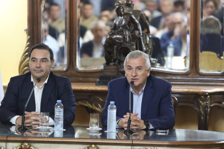 El precandidato a vicepresidente de la Nación por Juntos por el Cambio, Gerardo Morales, llegó a Corrientes en la mañana de hoy y fue recibido por el gobernador, Gustavo Valdés. Luego, juntos encabezaron una conferencia en el salón Amarillo de Casa de Gobierno.