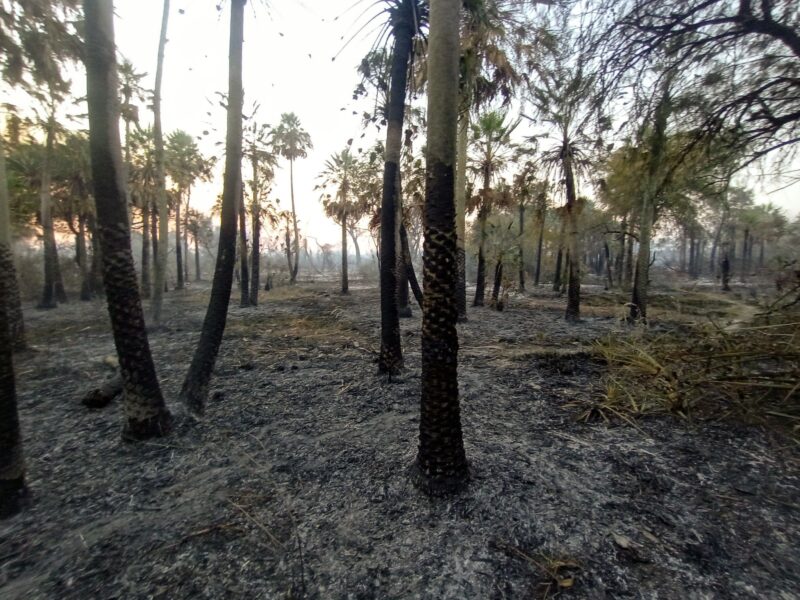 Desde la Estación Biológica informaron que hasta el momento, las llamas arrasaron con 210 hectáreas de pastizales, palmeras y bosques nativos.