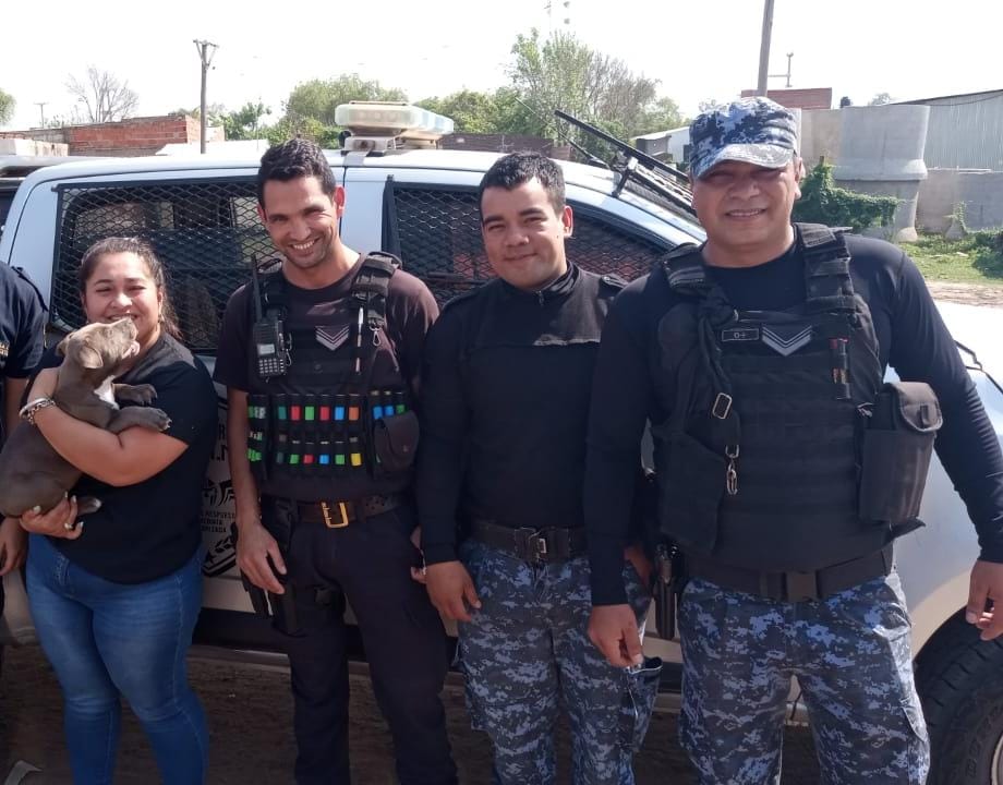 Policías de Grupo de Respuesta Inmediata Motorizada (Grim 5), se convirtieron en héroes para una familia del barrio Independencia de esta Capital, que sufrió el robo de su mascota, un cachorro de raza Pitbull.
