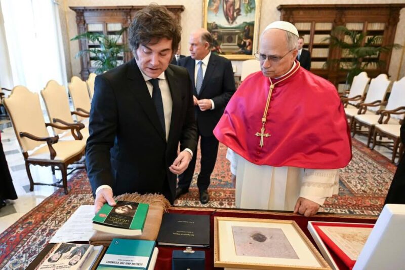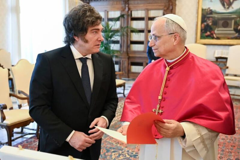 Se trató del primer contacto institucional entre el nuevo pontífice, de origen estadounidense y nacionalidad también peruana, y el mandatario argentino, luego de la elección de León XIV como sucesor de Jorge Bergoglio, fallecido en abril, y primer papa latinoamericano de la historia.
