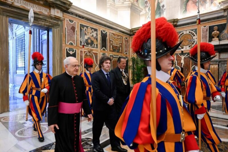 Tras la audiencia papal, Milei también mantuvo reuniones con el secretario de Estado vaticano, cardenal Pietro Parolin, y con el subsecretario para las Relaciones con los Estados, monseñor Miroslaw Wachowski.