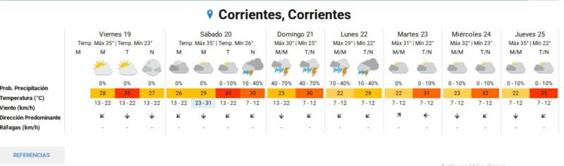 De acuerdo al Servicio Meteorológico, para este viernes se espera una temperatura máxima de 35 grados, por lo que la sensación térmica puede rozar los 40ºC, marca que se mantendría hasta el sábado (26ºC de mínima y 35ºC de máxima y para el inicio del verano se pronostica lluvia y un leve descenso de las marcas térmicas.