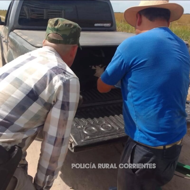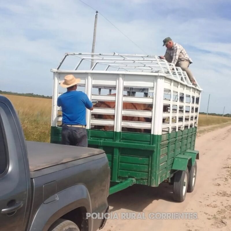Ante la advertencia, personal de la Policía Rural y Ecológica se Capital monto una vigilancia discreta y con personal de civil sobre las rutas provinciales 9 y 46 y lograron interceptar una camioneta Volkswagen Amarok con un tráiler, conducida por José Ovidio R.B. , quien transportaba dos vacas en el carro y un torito maniatado en la caja de la camioneta .