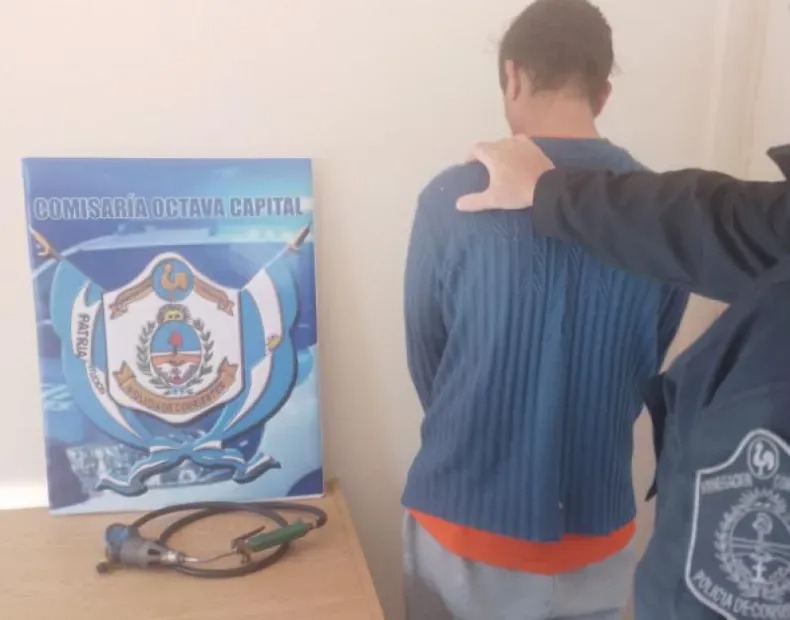 El ladrón fue apresado y luego identificado como Juan Manuel B. de 41 años, quien además posee antecedentes criminales por robos y hurtos. En su poder llevaba aún una manguera y un soplete que también había robado del mismo domicilio.