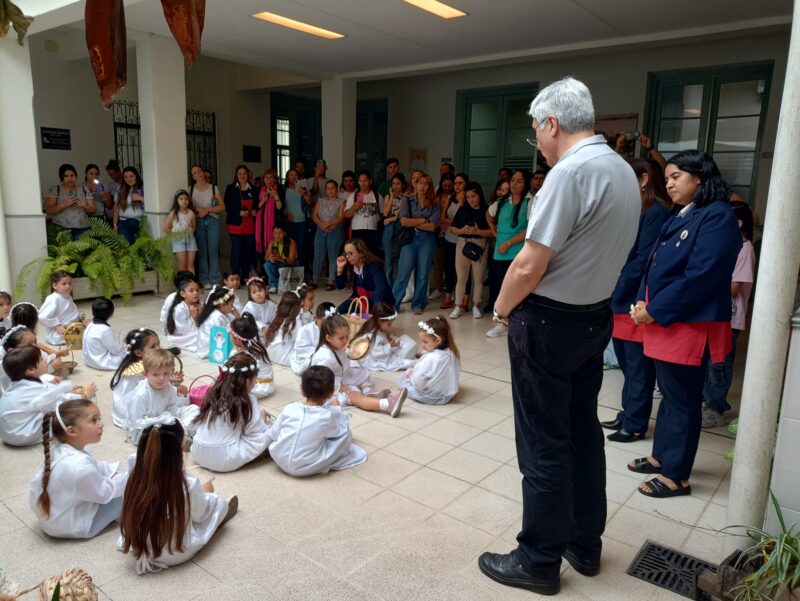Por otro lado, como todos los años, el Arzobispado se llenó de pequeños ángeles; niños de la sala de cuatro años del Jardín de Santa Teresita, visitaron la curia para llevar la tradicional bendición de “Ángeles somos”.