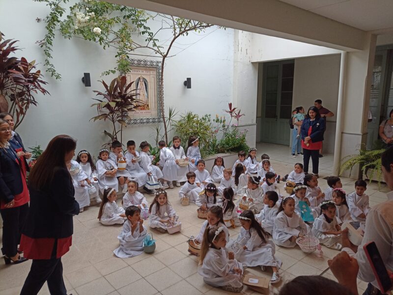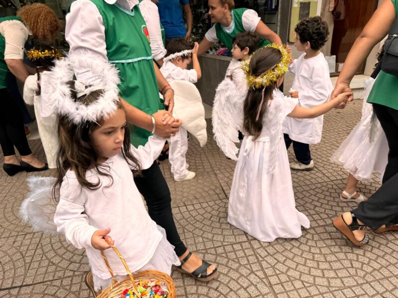 La tradición correntina que se mantiene y que implica el recorrido de los niños revestidos como ángeles acercando bendiciones a cambio de “colación” llevó a un grupo de niños, acompañados de maestras y padres, hasta el Arzobispado.