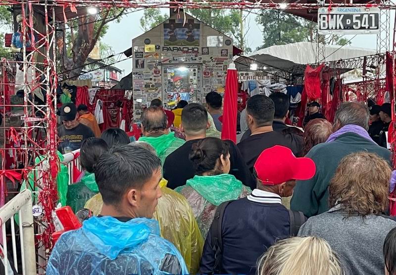 A la medianoche, el cielo se iluminó con fuegos artificiales mientras una lluvia de granizo desafiaba a los promeseros que permanecieron en el lugar para expresar su agradecimiento al Gauchito Gil y, quizá, pedirle algún favor en su día, entre velas rojas, banderas del mismo color y todo tipo de ofrendas.