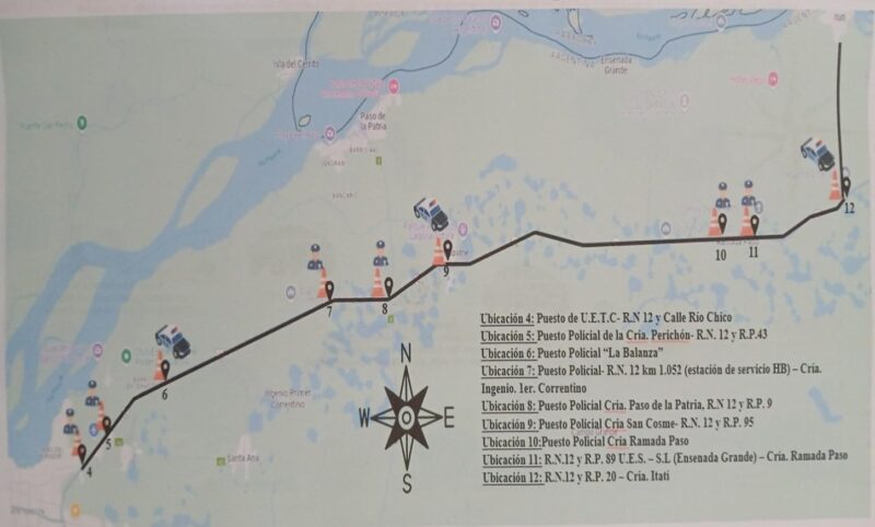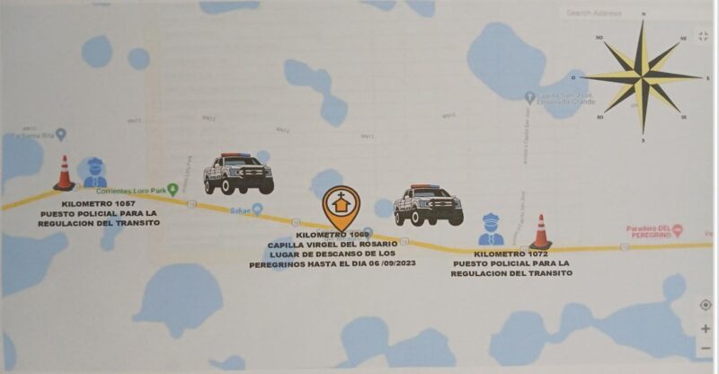 La Policía de Corrientes desplegó un operativo especial de seguridad sobre la Ruta Nacional 12 y vías alternativas para garantizar el normal desarrollo de la peregrinación, teniendo en cuenta que se movilizan de a pie y en vehículos de apoyo, por lo que sumaron a efectivos de fuerzas nacionales como Gendarmería y organismos civiles. El operativo en cuestión se desarrollará este viernes 5 y sábado 6, el martes 9 y miércoles 10 con motivo del retorno a la Capital.
