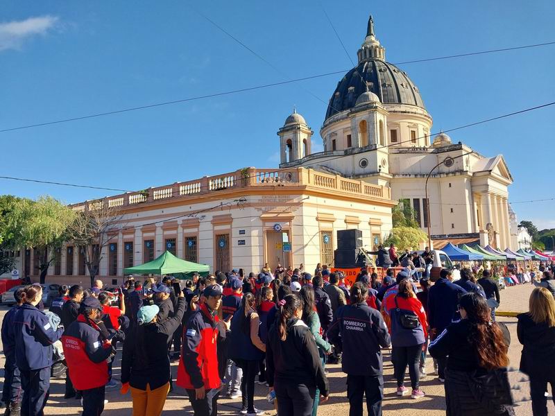 Los Bomberos Voluntarios, acompañados por el grupo Jopará, ingresaron a la ciudad por la avenida 25 de Mayo, seguidos de los móviles de distintos cuarteles de la provincia.
