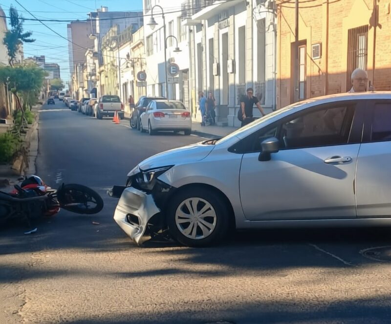 Minutos después de las 8, el tránsito en el corazón de la ciudad se vio interrumpido por un fuerte choque en la intersección de las calles Córdoba y Plácido Martínez. El siniestro tuvo como protagonistas a un automóvil Nissan Versa, que se desplazaba por Plácido Martínez, y a una motocicleta Gilera de 150 cc que circulaba por Córdoba.