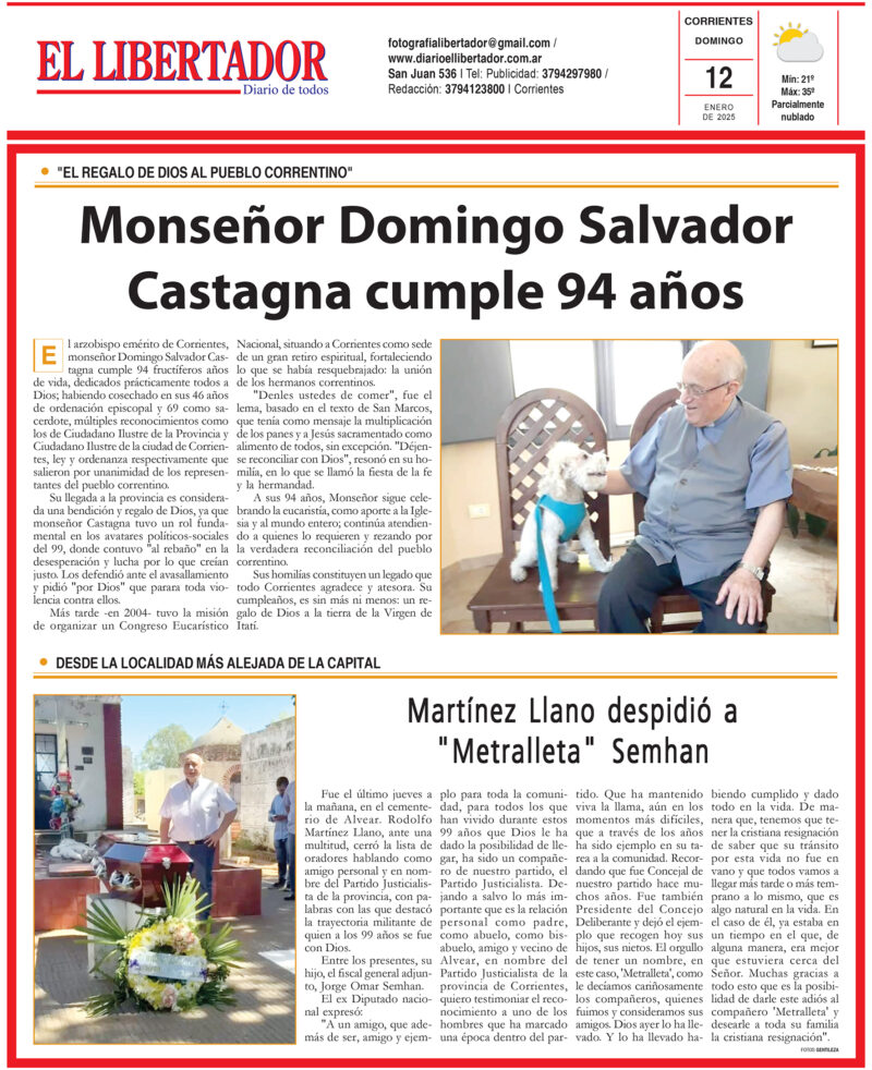 Fue el último jueves a la mañana, en el cementerio de Alvear. Rodolfo Martínez Llano, ante una multitud, cerró la lista de oradores hablando como amigo personal y en nombre del Partido Justicialista de la provincia, con palabras con las que destacó la trayectoria militante de quien a los 99 años se fue con Dios.