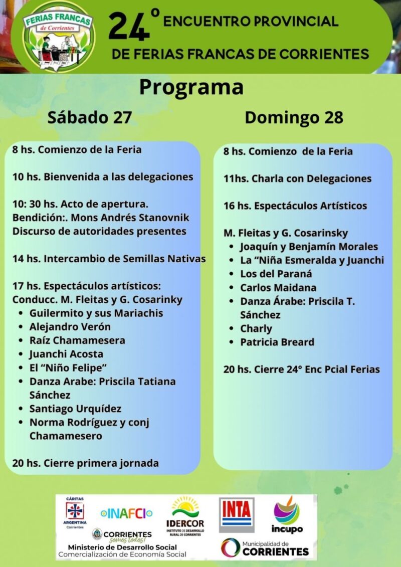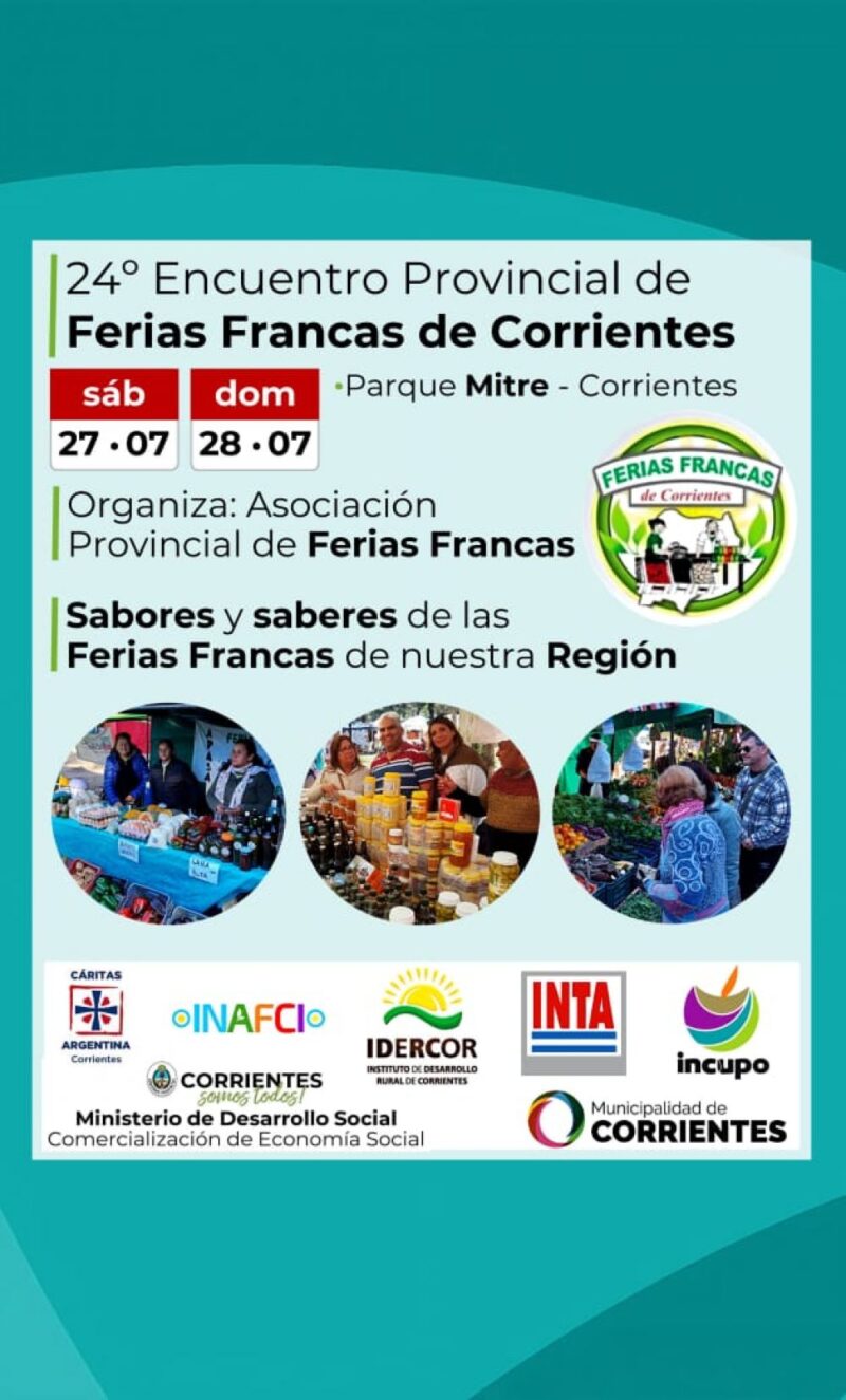 El Encuentro Provincial contará con la presencia del Municipio de Corrientes, y cuenta con el apoyo de Incupo, Cáritas, Inafci, Inta, Idercor y la Dirección de Comercialización del Ministerio de Desarrollo Social de Corrientes.