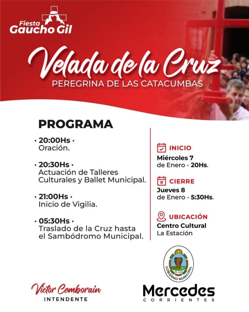 Los homenajes al Gaucho Gil comenzarán formalmente el miércoles 7 de enero a las 20, con la «Velada de la Cruz» en el Centro Cultural La Estación. La jornada incluirá momentos de oración, actuaciones de talleres culturales y el inicio de la vigilia a las 21.