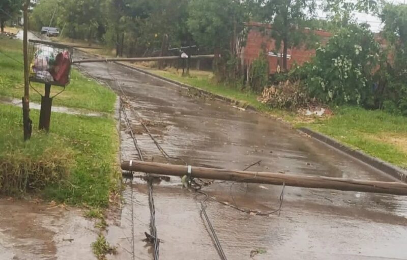 La ciudad correntina de Mercedes registró este viernes un fuerte temporal que dejó destrozos, voladuras de techos y caídas de postes de luz.