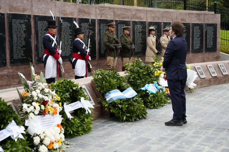 Milei también expresó su “respeto y agradecimiento” a los veteranos y caídos en la guerra, y destacó el rol de las Fuerzas Armadas como una expresión de los valores nacionales.