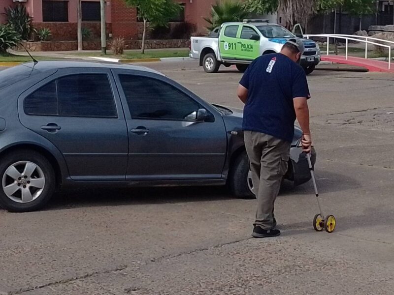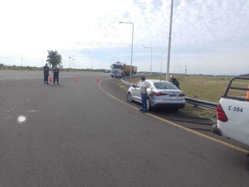 Otra colisión se produjo en la zona urbana, más precisamente en el cruce de las calles Colón y Perelló, entre una motocicleta con dos ocupantes y un automóvil.