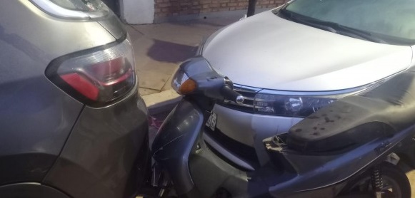 El motociclista, que circulaba en una motocicleta Guerrero Trip por la calle Juan Pujol, dobló por la calle José María Gómez y perdió el control del rodado, impactando contra dos autos estacionados.