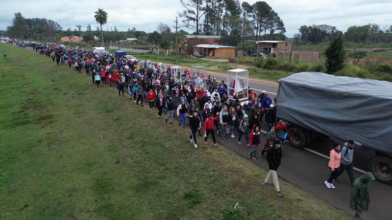 Varios miles de fieles iniciaron el camino que une las localidades a través de la Ruta Nacional 12. Cientos de personas a pie, unos 30.000 jinetes, más de 100 carros y carretas llegarán hoy por la tarde a la Basílica, donde serán recibidos por autoridades eclesiásticas.