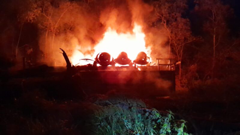 Al parecer, luego de los trabajos que realizaron los rescatistas y cuando despejaron la circulación en la ruta, unos desconocidos se acercaron al vehículo semi destruido por el fuego y se llevaron llantas, ejes, elásticos, maza, campanas, cadenas y bulones.
