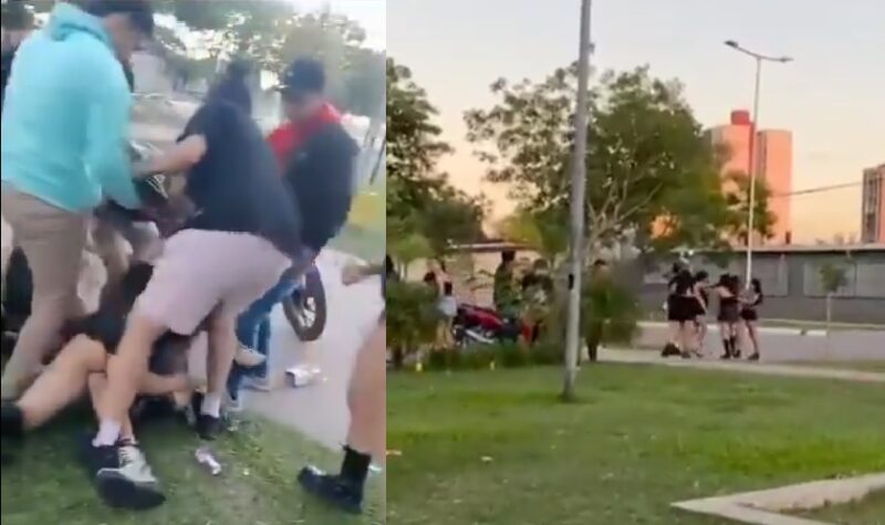 “Corrientes. Violencia juvenil en plaza 20. Exceso de alcohol y otras cosas”, mencionaron al compartir las filmaciones.