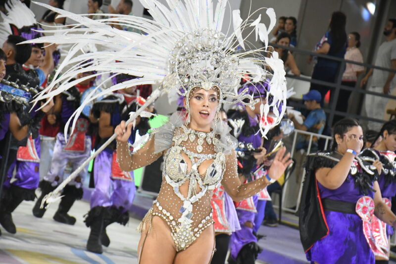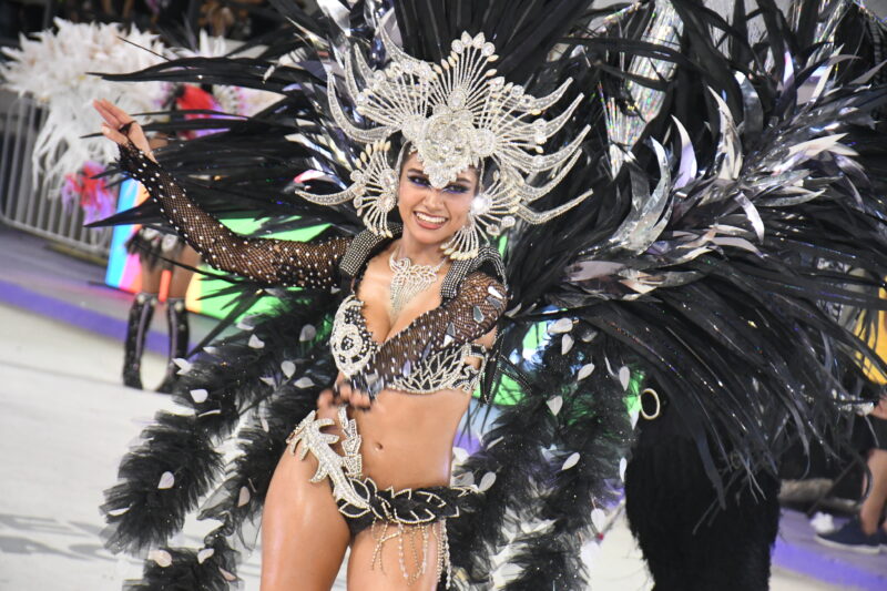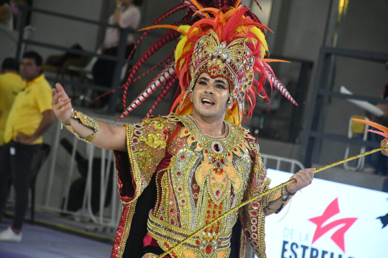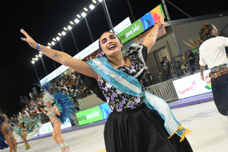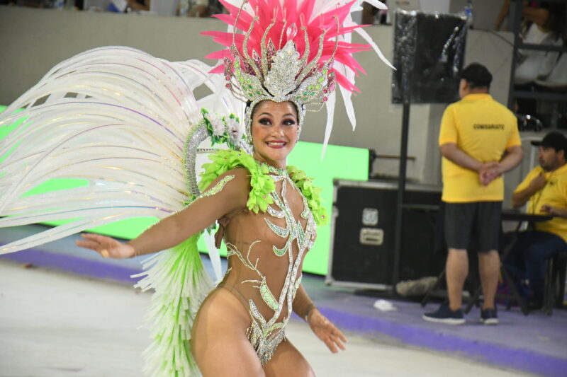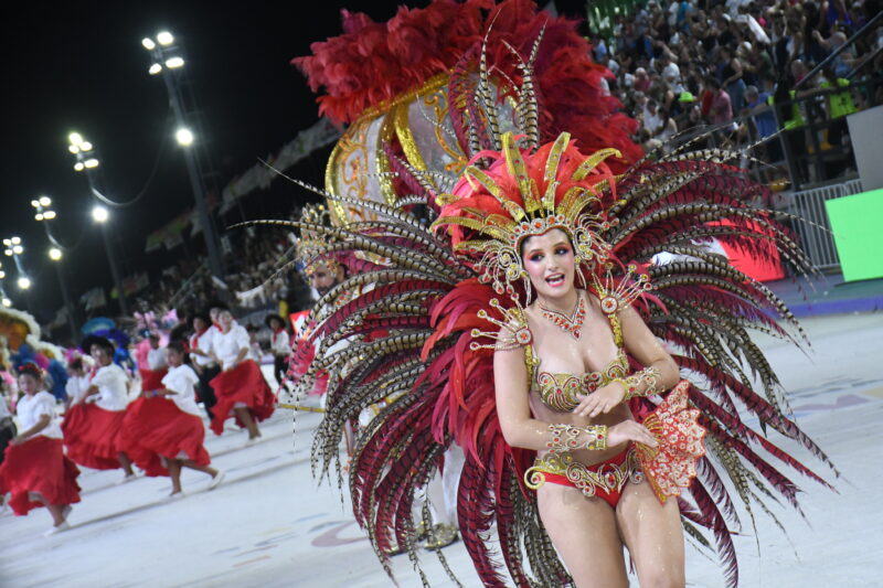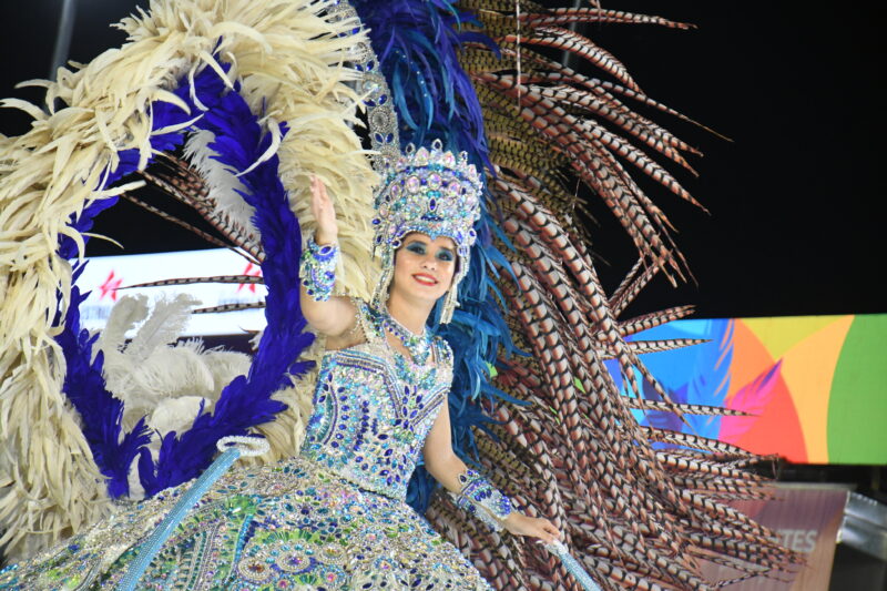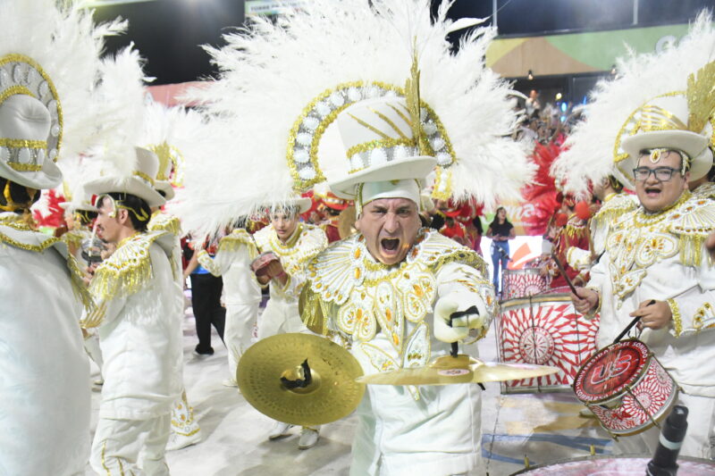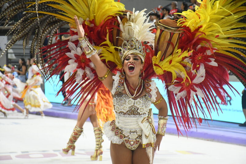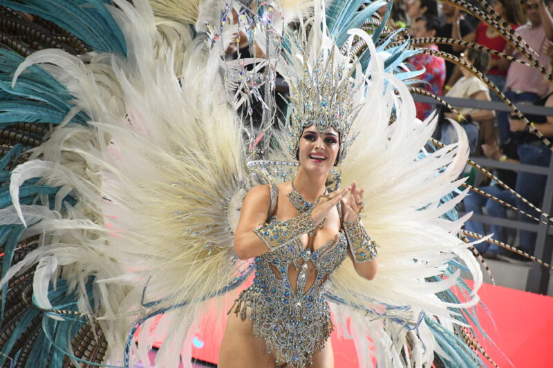 El espectáculo también contó con la destacada pasada de las agrupaciones musicales y comparsas locales. Kamandukahia, Sambanda y Samba Total hicieron gala de su talento y cadencia, mientras que las emblemáticas comparsas Copacabana, Ara Berá y Sapucay reafirmaron su legado en el carnaval más importante del país.