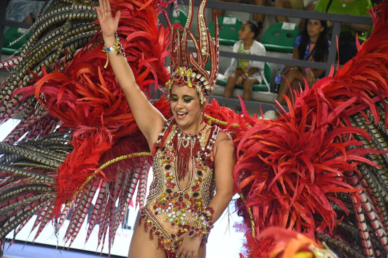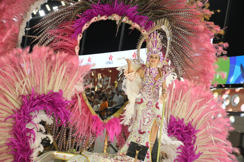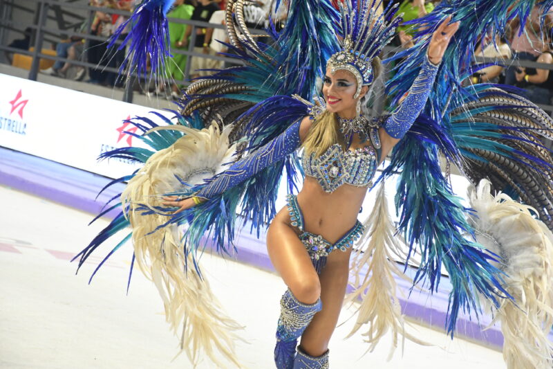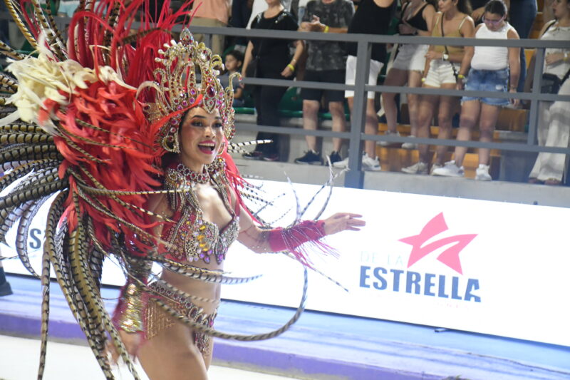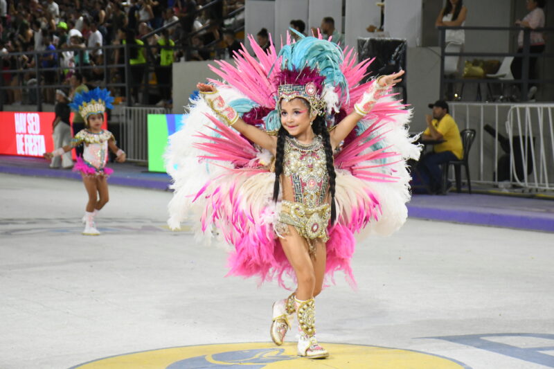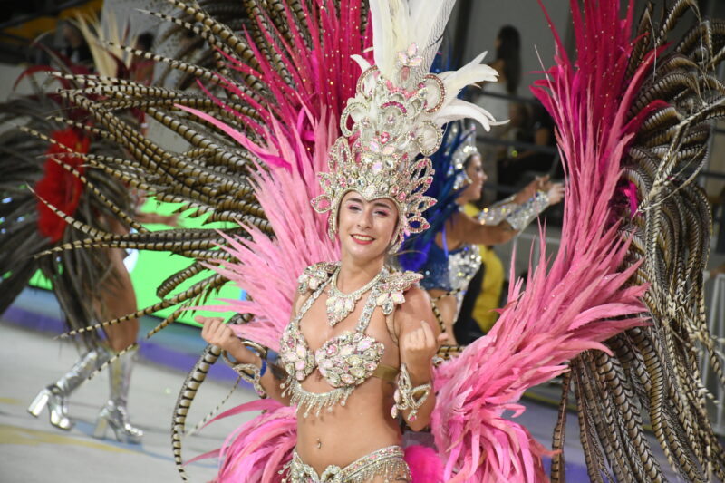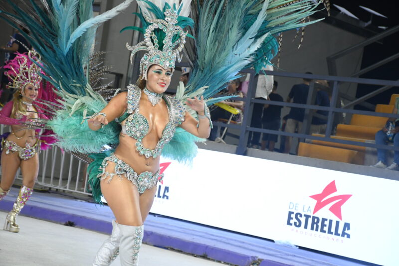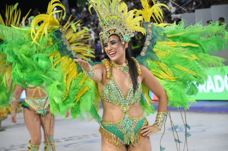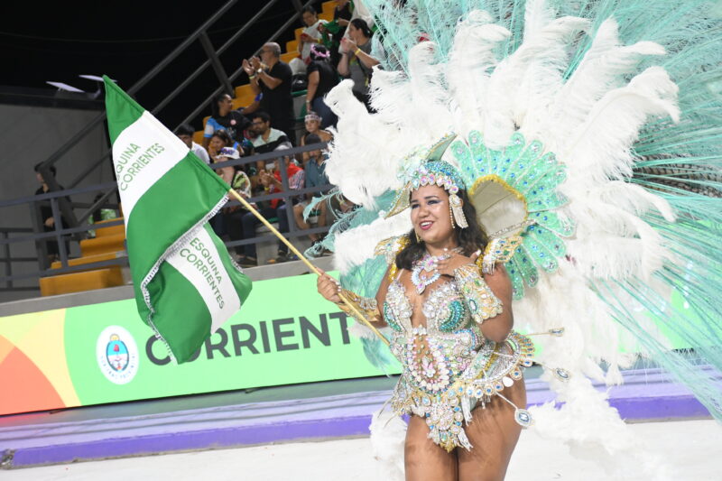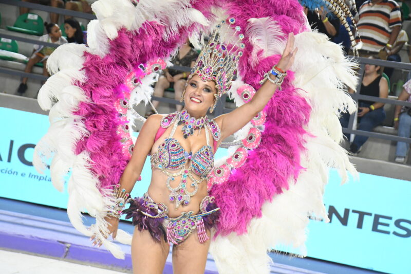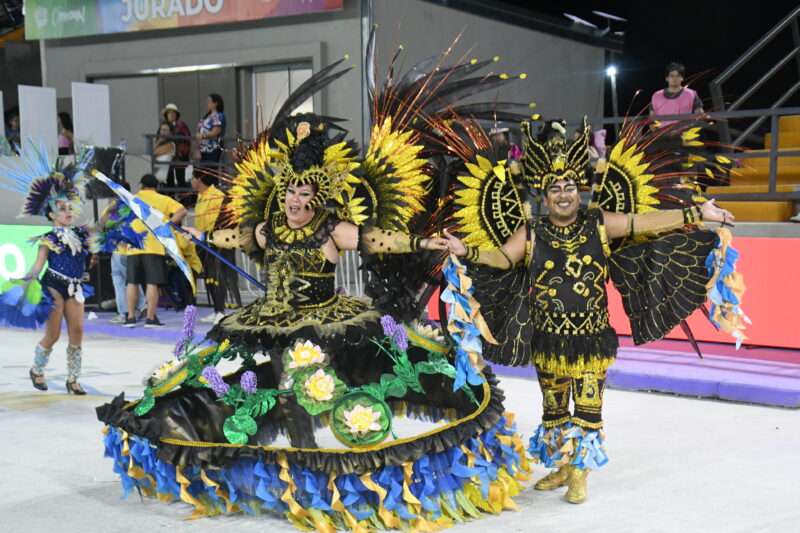El espectáculo también contó con la destacada pasada de las agrupaciones musicales y comparsas locales. Kamandukahia, Sambanda y Samba Total hicieron gala de su talento y cadencia, mientras que las emblemáticas comparsas Copacabana, Ara Berá y Sapucay reafirmaron su legado en el carnaval más importante del país.