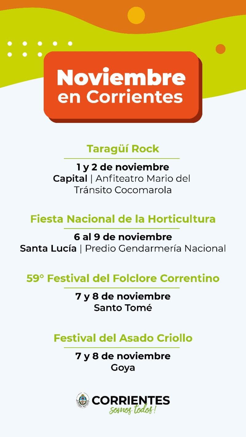 Noviembre se tiñe de fiesta y cultura en la provincia de Corrientes, ofreciendo una agenda cargada de eventos que celebran desde el rock hasta las tradiciones más arraigadas. Un mes ideal para recorrer su geografía y disfrutar de la calidez de su gente y la riqueza de sus producciones.