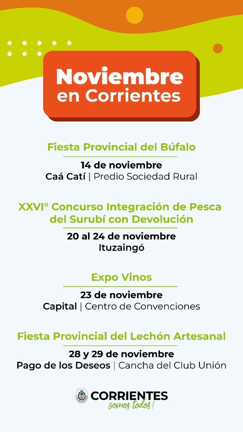 Avanzando en el calendario, el 14 de noviembre es el turno de Caá Catí, que acoge la Fiesta Provincial del Búfalo en el Predio Sociedad Rural, poniendo en valor una producción pecuaria de creciente importancia en la provincia.