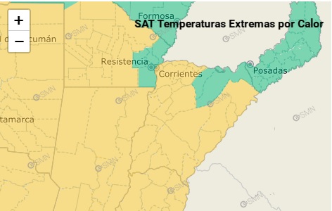 Para el caso particular de Corrientes, al alerta amarilla abarca a gran parte de la provincia, según el último informe publicado esta tarde en la página oficial del SMN.