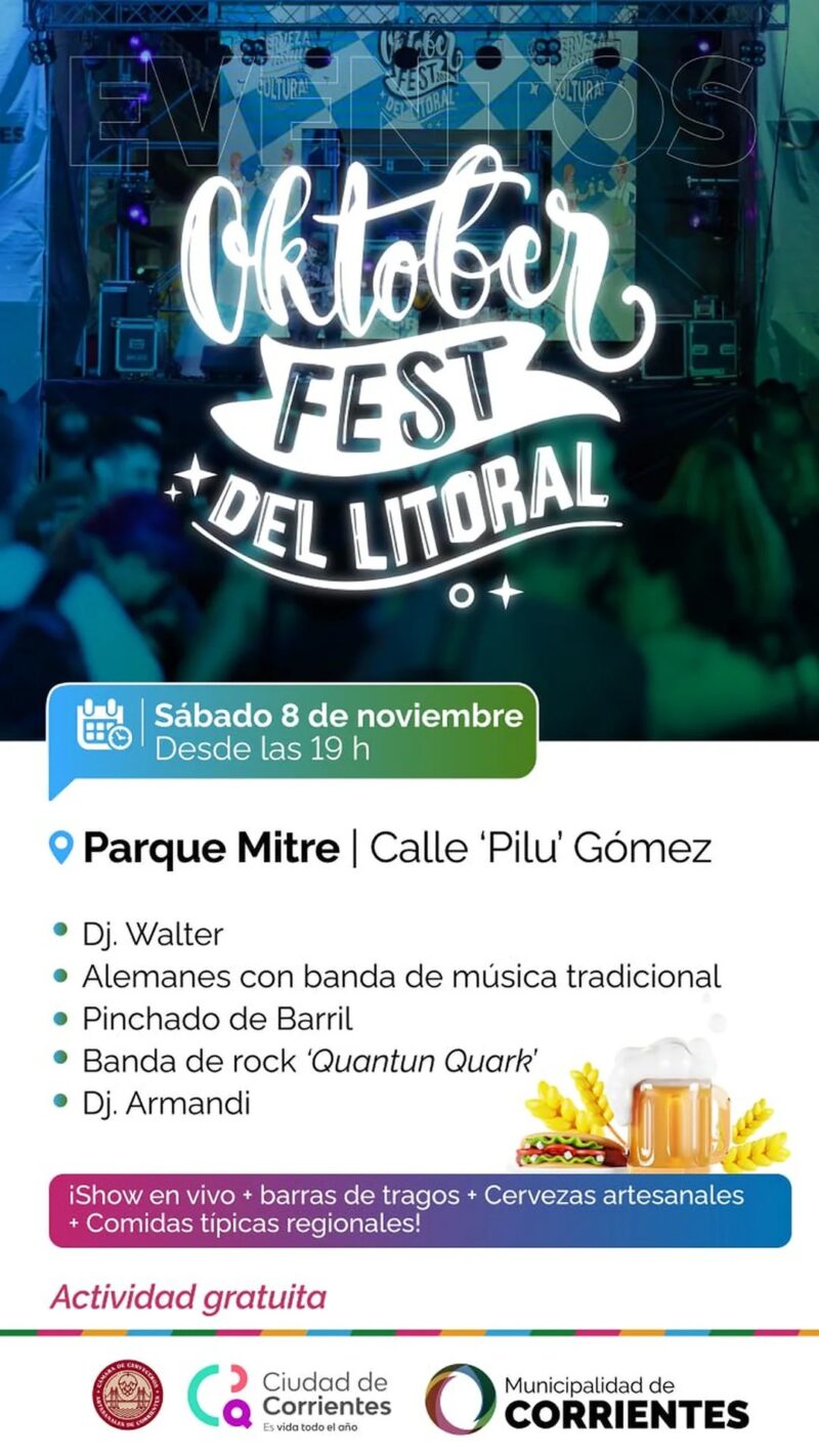 En la noche de ayer comenzó una nueva edición del Oktober Fest del Litoral en el parque Mitre y hoy continuará de 19 a 3 de la madrugada. Ser tiene previsto shows en vivo, barras de tragos, comidas típicas regionales y una variedad de cervezas artesanales para degustar.