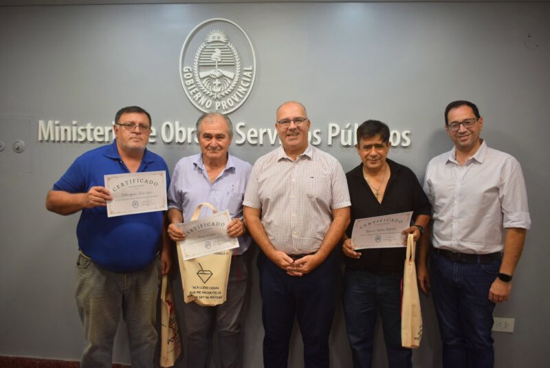 El ministro de Obras y Servicios Públicos, Jorge Meza, encabezó un acto de reconocimiento a tres agentes de la cartera que recientemente iniciaron su etapa de jubilación.