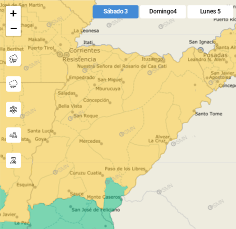 El Servicio Meteorológico Nacional, emitió en la mañana de este sábado 3, una nueva alerta amarilla por tormentas severas y abundante caída de agua, para casi toda la provincia. No se descartan, ráfagas de viento, actividad eléctrica y granizo.