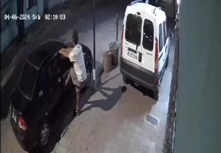 El damnificado difundió un video en el que muestra el momento en el que un sujeto abre la puerta de un automóvil que se hallaba estacionado para llevarse lo que había en su interior. Las imágenes que quedaron grabadas a las 2.10 de la madrugada de este sábado 6, además del hecho delictivo muestran también una infracción a la ley de tránsito, ya que a metros del automóvil violentado, sobre la vereda se encontraba estacionado un vehículo utilitario.