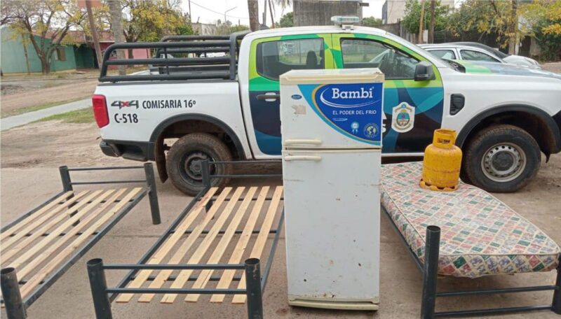 En un baldío, como si hubieran sido abandonados, aparecieron los elementos sustraídos: tres camas de una plaza, un colchón, una heladera y una garrafa de gas de 10 kilogramos.