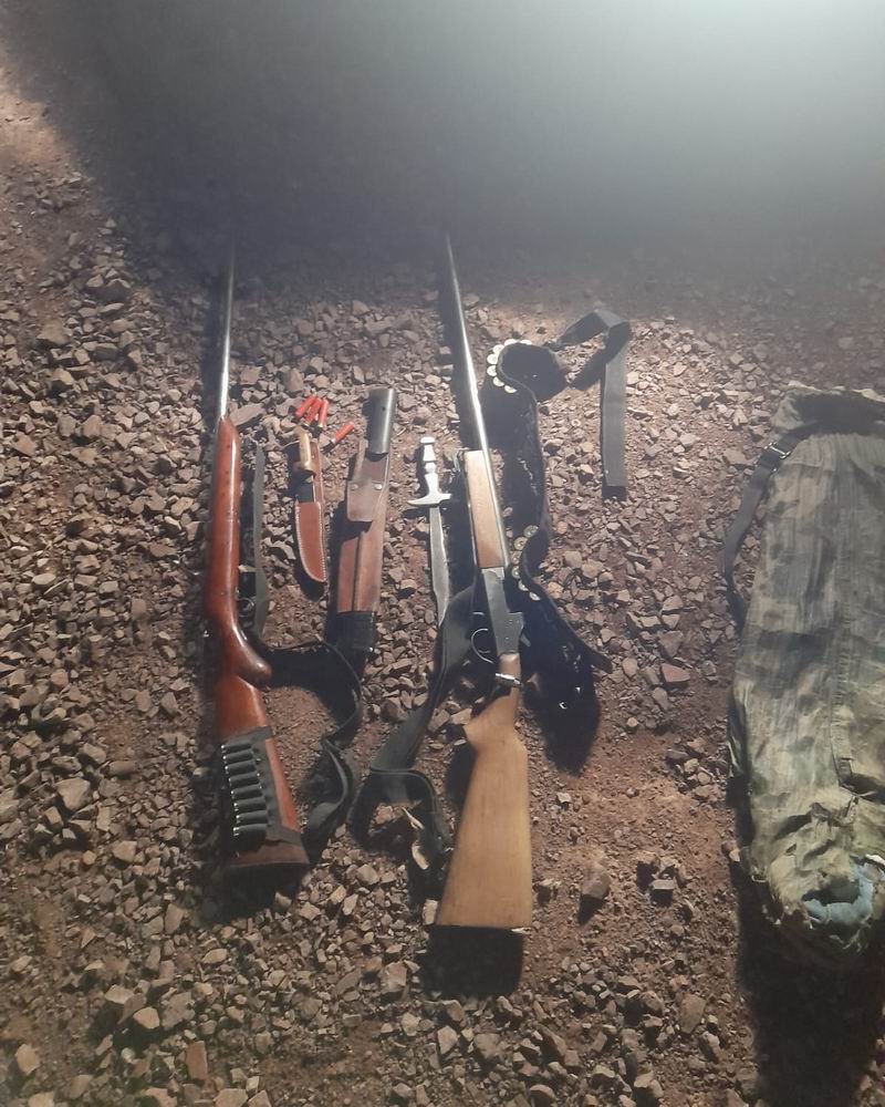 Los hicieron detenerse y les pidieron que mostraran el contenido del bolso. Descubrieron que tenían «dos escopetas una calibre 12/17 y otro de menor calibre con trece cartuchos, ocho cartuchos de escopeta calibre 14, y cuatro cartuchos de calibre 36», detallaron.