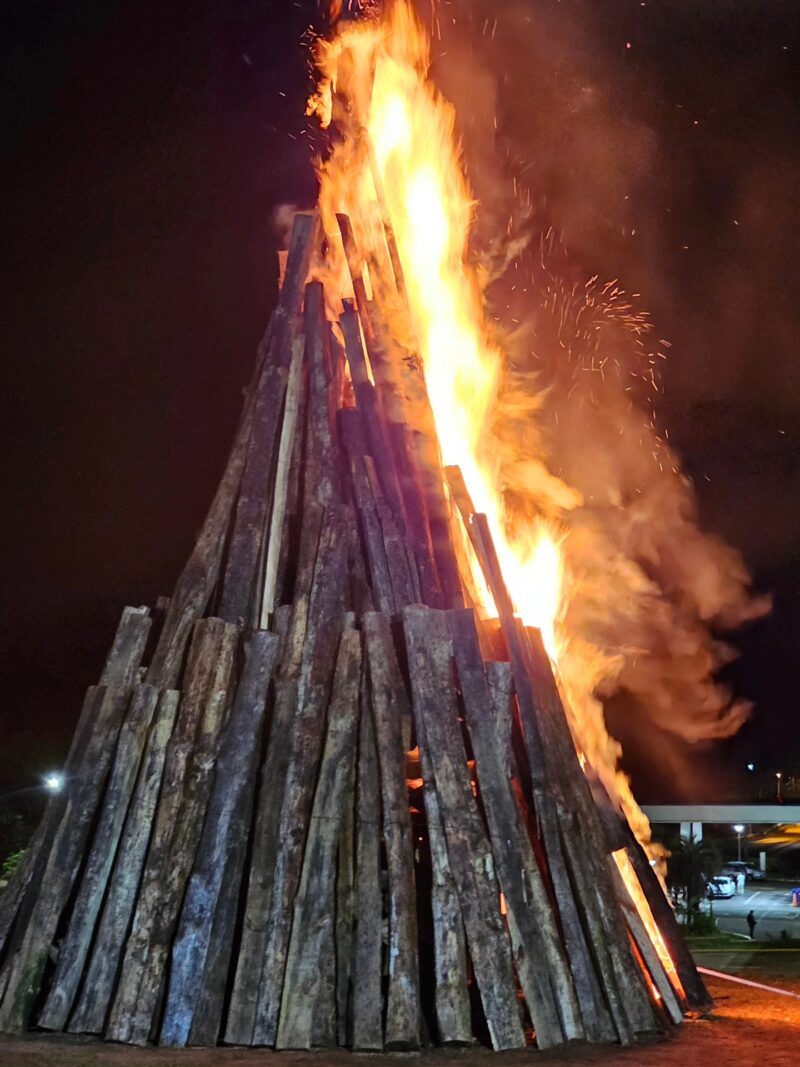La apertura estuvo marcada, como cada año, por el tradicional encendido de “la pira», la imponente fogata inaugural del festival. Tras el calor de las llamas, la noche se encendió con un vibrante espectáculo musical, que contó con bandas de cumbia, rock y DJs en vivo. La velada transcurrió con total normalidad y el disfrute generalizado de los asistentes, quienes celebraron que las condiciones del tiempo mejoraron.