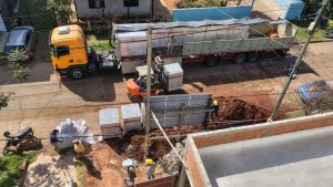 La primera etapa, que concluyó en abril de este año, se centró en la demolición del antiguo edificio y la construcción de la estructura de hormigón armado, las mamposterías interiores y exteriores, la cubierta de techo, los contrapisos, las aislaciones y los desagües pluviales. Por otra parte, para la construcción de muros se utilizaron bloques HCCA tipo Retak.