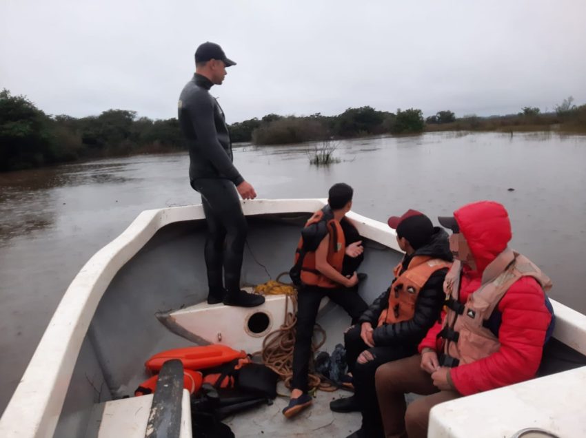 Personal de la Prefectura Naval Argentina asistió a tres personas (una de ellas menor de edad) que habían quedado aisladas tras caer de sus caballos intentando cruzar el arroyo Yatay, en Paso de los Libres, Corrientes.