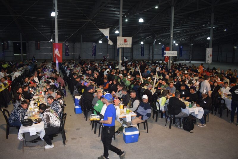 Más allá de los resultados, el espíritu que dominó el concurso fue el de la unión y la pasión por este deporte. La ceremonia de premiación fue un reflejo de este sentimiento, con banderas y pancartas que identificaban a cada barra pesquera. En un ambiente familiar, los pescadores compartieron una cena que comenzó con una gran tabla de fiambres, ideal para reponer energías después de la competencia.