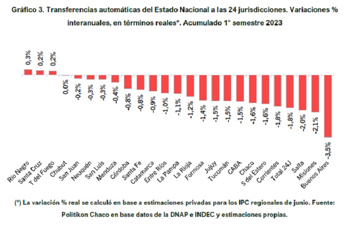 El dato surge de un estudio llevado a cabo por la consultora Politikon Chaco, a partir de un cotejo entre las transferencias automáticas de recursos de origen nacional enviados al consolidado de provincias y Caba.