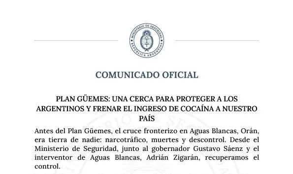 En la localidad de Aguas Blancas en Salta se construirá un cerco de alambre en la frontera con Bolivia, para evitar el paso ilegal de personas y el contrabando. La medida es parte del Plan Güemes del Ministerio de Seguridad que lidera Patricia Bullrich, a fin de fortalecer las fronteras del norte. Además de evitar el paso ilegal de personas y contrabando.