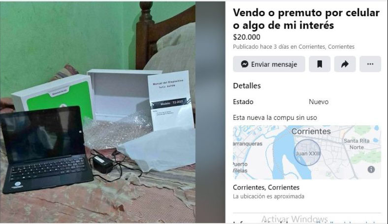 Un usuario de Facebook quedó en el ojo de la tormenta al poner en venta a través de la red social una notebook escolar entregada por el Gobierno de Corrientes.