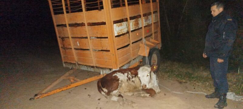 Un intento de robo de ganado fue frustrado este domingo por la noche en un campo ubicado en la ruta Provincial N° 13, kilómetro 26, en la zona rural de Pago de los Deseos. Los delincuentes, al verse sorprendidos por una comisión policial, abandonaron un tráiler y cuatro animales vacunos, y se dieron a la fuga.