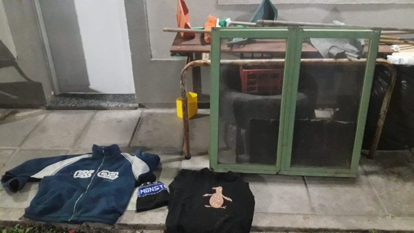 De acuerdo al relato policial el sujeto golpeaba las puertas de los domicilios y aparentemente ofrecía en venta ropas varias y dos hojas de ventana, con sus respectivos vidrios. Pero al notar la presencia policial, abandonó las cosas y se dio a la fuga hasta perderse de vista.
