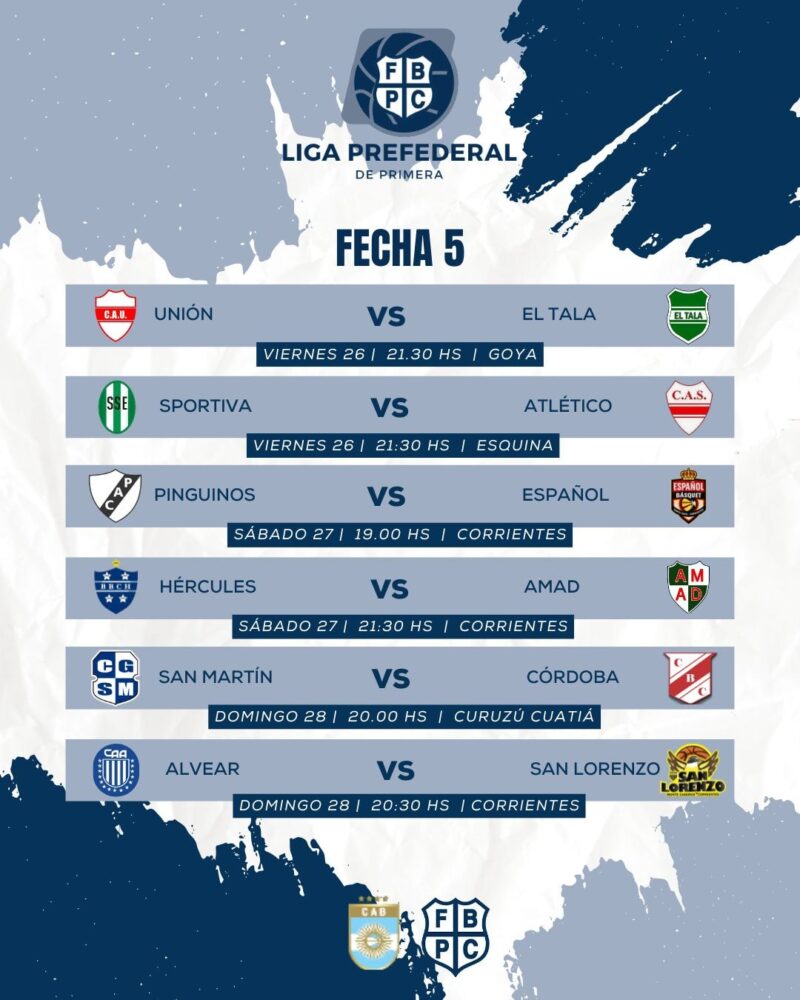 Con dos encuentros comenzará a jugarse este viernes la quinta fecha de los grupos A y B, última fecha de la primera rueda, del torneo que organiza la Federación de Básquetbol de la Provincia de Corrientes (FBPC).