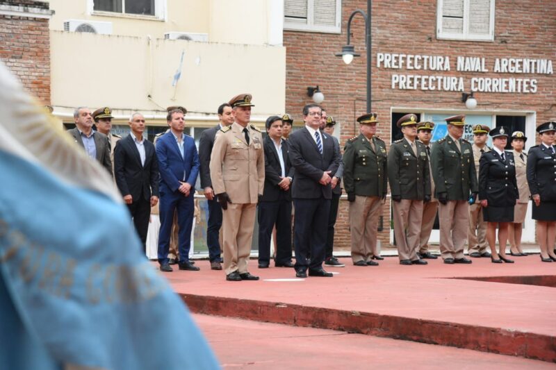 El vicegobernador, Pedro Braillard Poccard, encabezó junto al director de región Norte Prefecto Mayor, Daniel Germán Bonifacini, el acto homenaje que tuvo lugar en la Plaza de Armas de zona Paraná Superior y Paraguay.