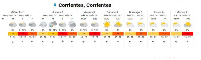 La mínima será de 22 grados, habrá humedad del 65%, el viento Este a 13 km/h y visibilidad de 10 k.