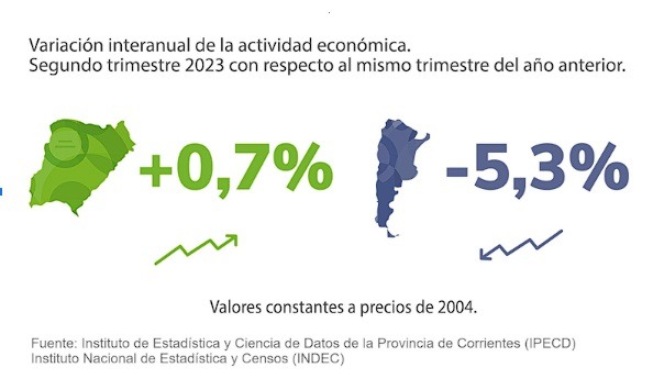 De acuerdo con las estimaciones realizadas por el Instituto Provincial de Estadística y Ciencia de Datos de Corrientes (IPECD), el último dato disponible del segundo trimestre de 2023 del Producto Bruto Geográfico (PBG) mostró una variación interanual positiva del orden del 0,7%.