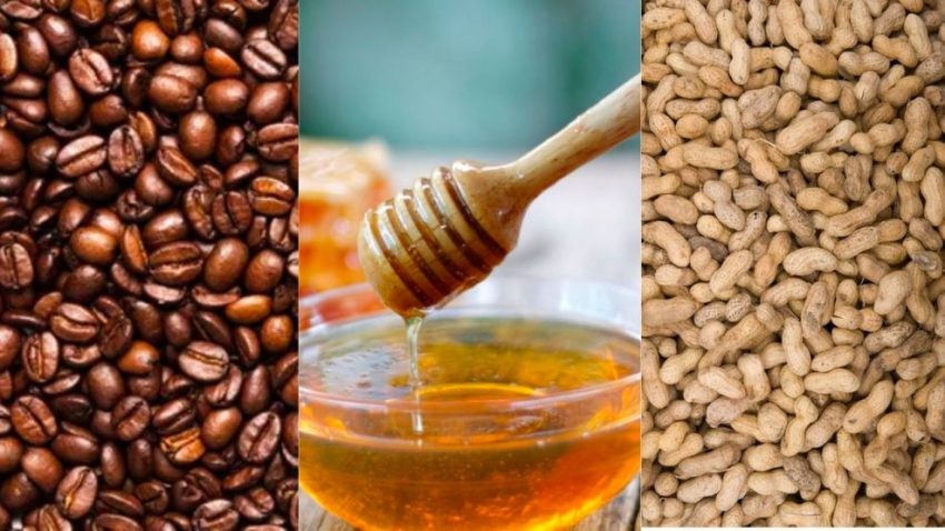 Se trata de un café en grano, una miel y un snack “saludable”.