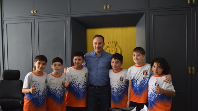 La visita al despacho municipal fue un momento muy especial para los pequeños jugadores puedan tener una foto junto al intendente Mariano Hormaechea, quienes compartieron la emoción con algunos de sus padres. Para muchos de ellos, conocer al intendente y recibir su apoyo era un sueño cumplido antes de la gran cita futbolera.